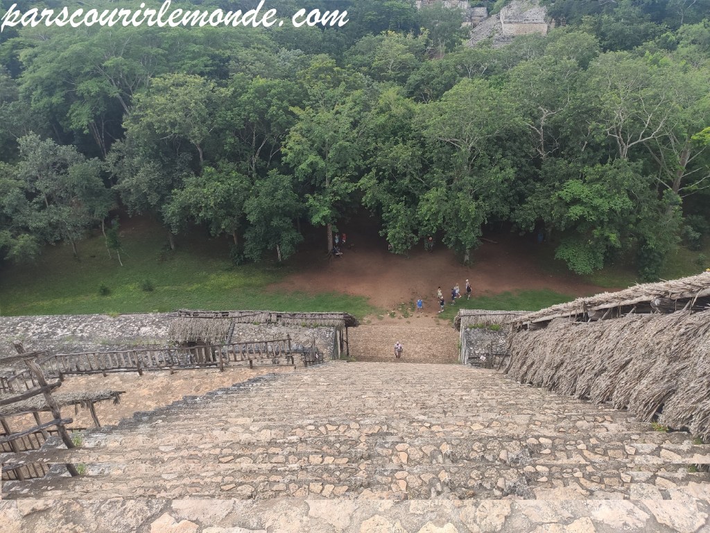 Le site est grand, la ballade très agréable. C’est bien différent de Chichen Itza, ici on ne croise que 3 ou 4 personnes. On peut monter sur pas mal de temples également et on se sent vraiment en plein milieu de la nature.
